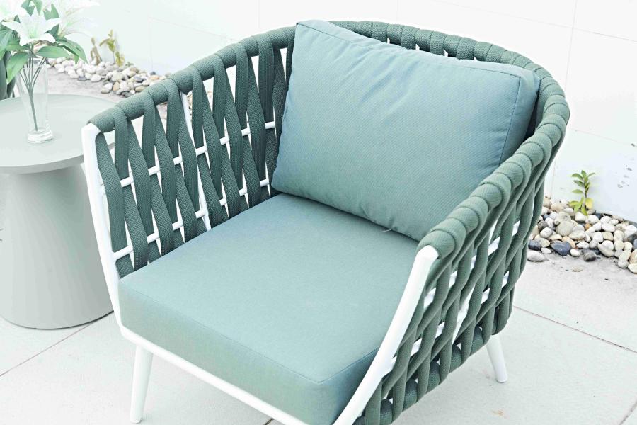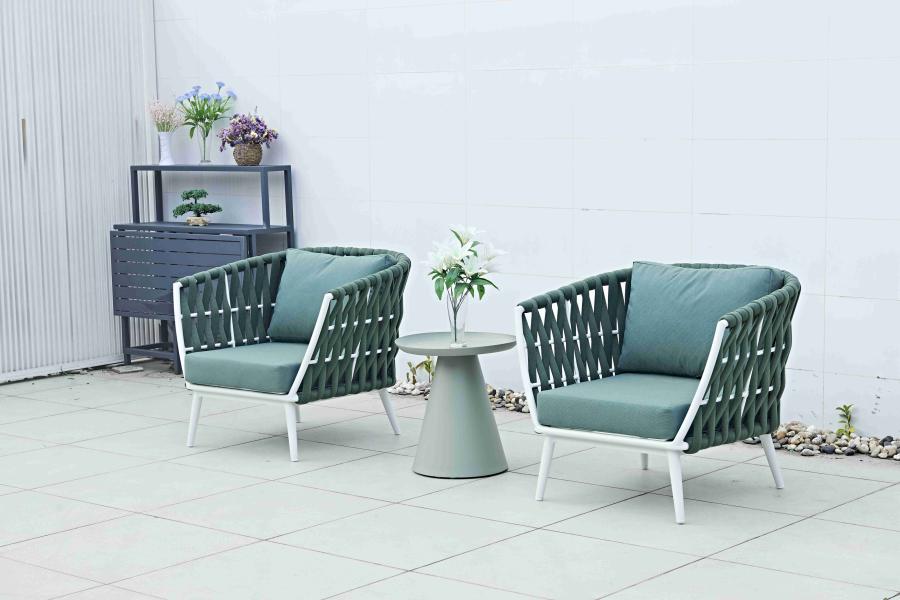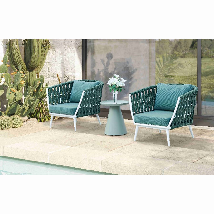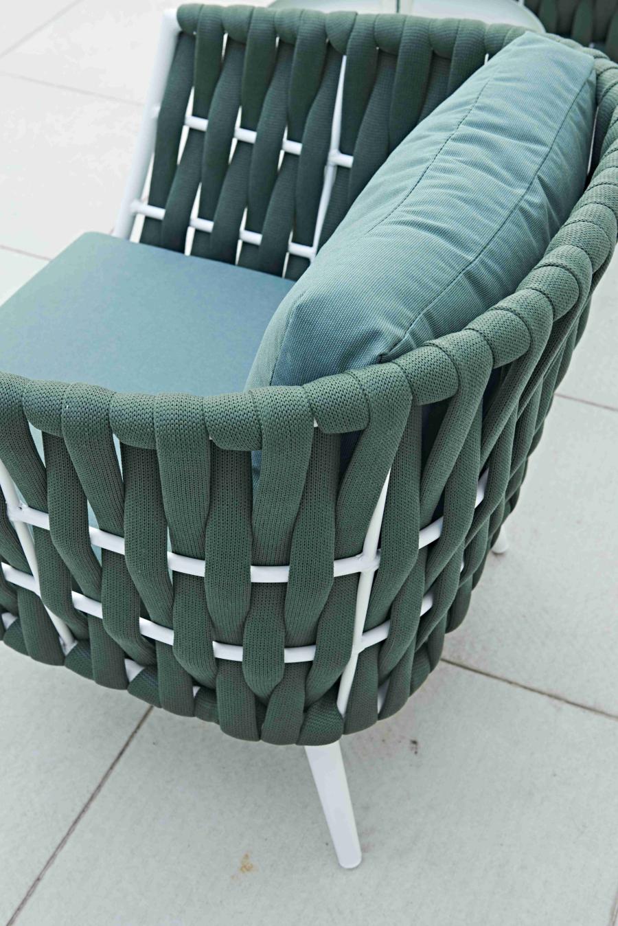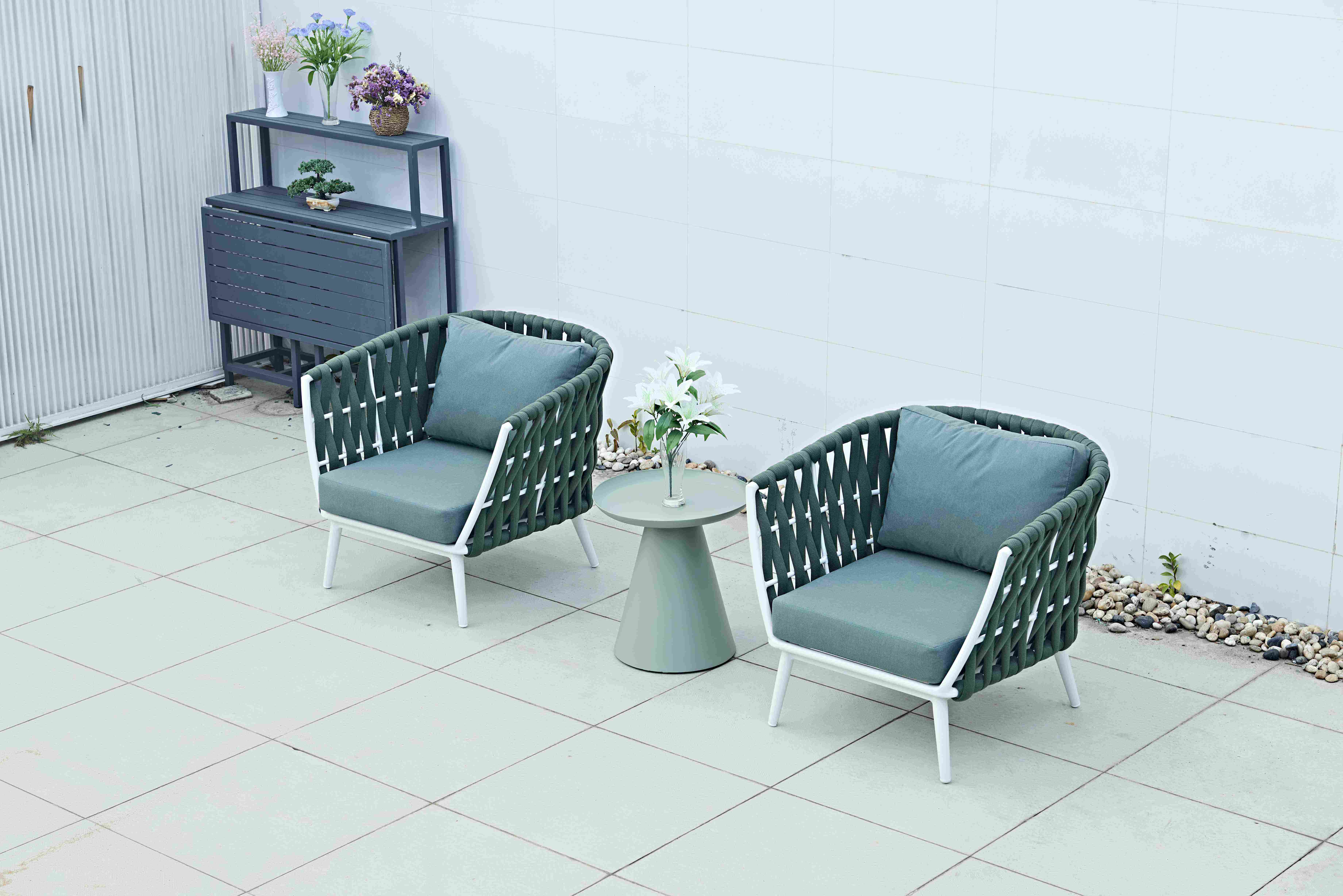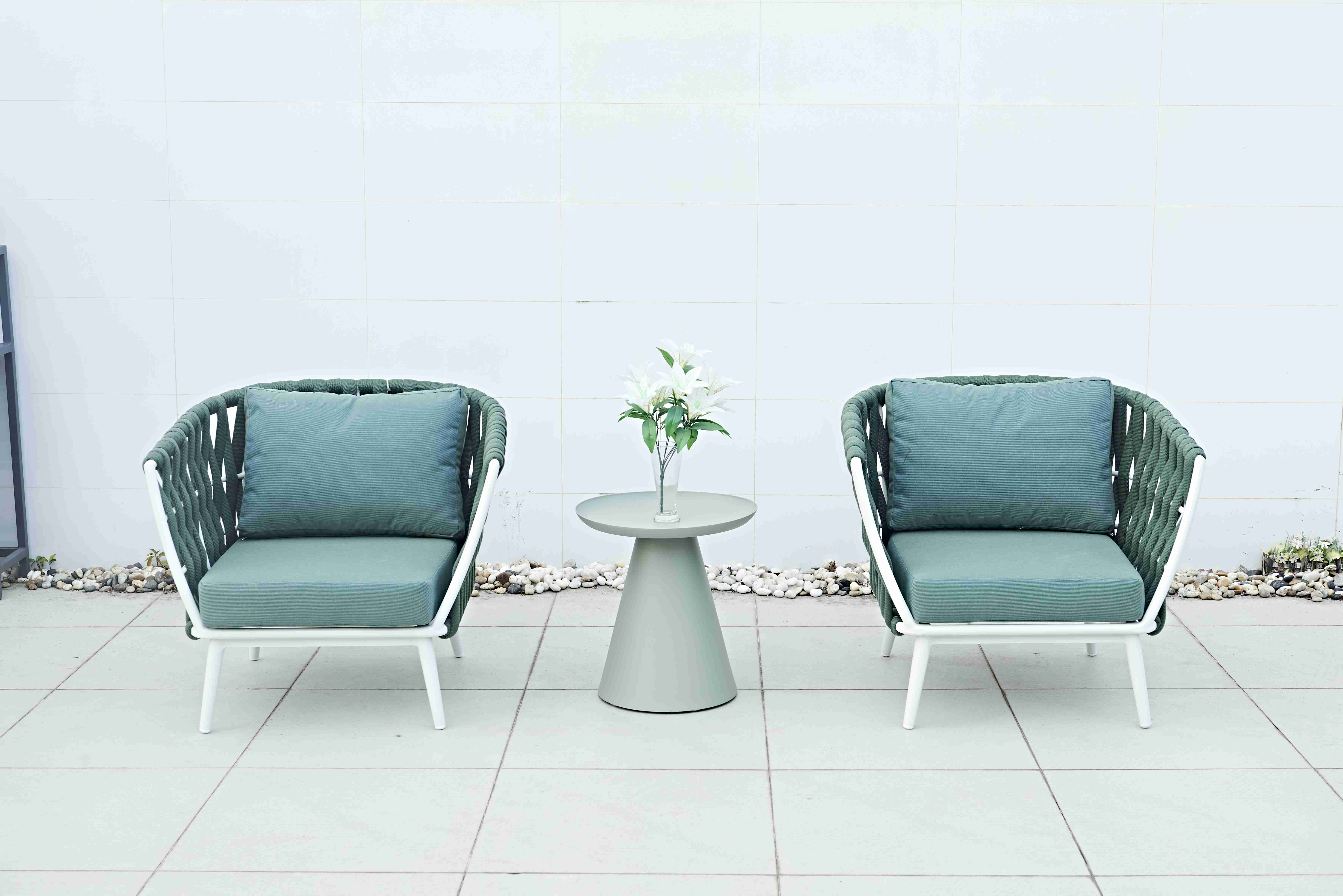 Modern Outdoor Aluminum Rope Coffee Set Durable Garden Furniture with Easy Stack Table and Chair for Living Room or Leisure