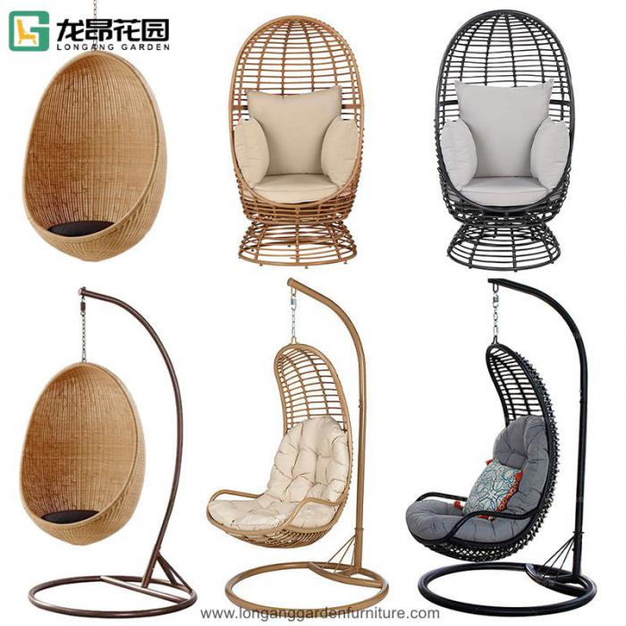 Modern courtyard villa outdoor rattan swing egg chair with cushion combination