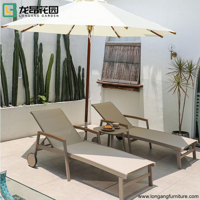 All-weather beach pool outdoor sun bed combined furniture with umbrella