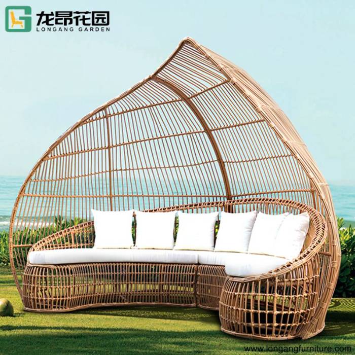 Beach courtyard outdoor leisure sunshine terrace lounge beach wicker rattan recliner bed