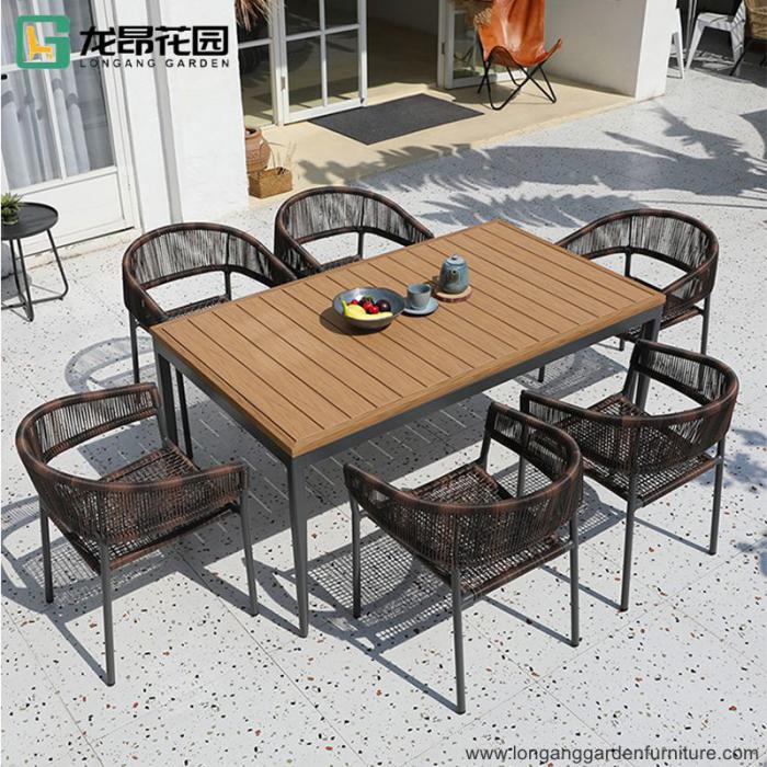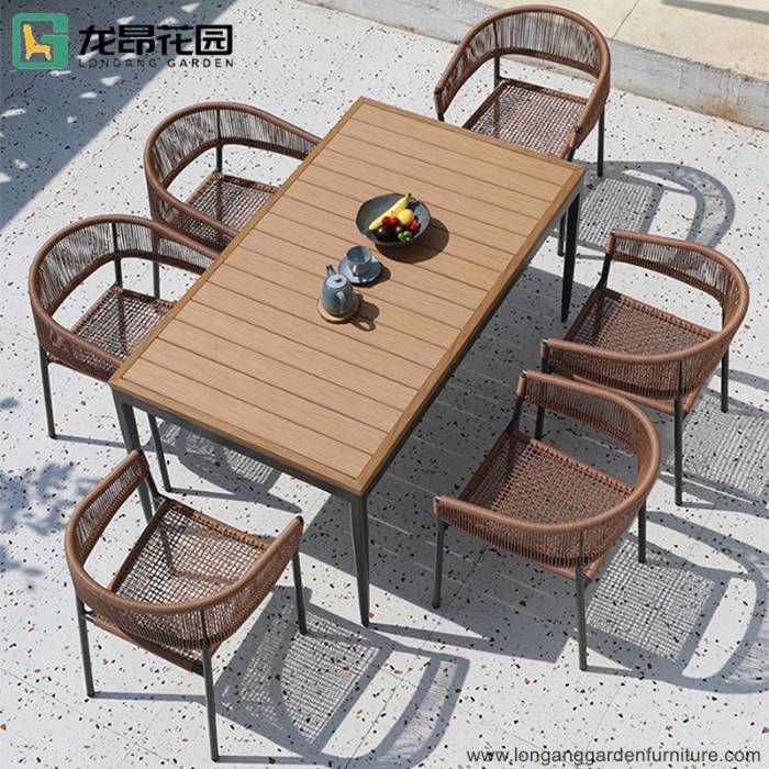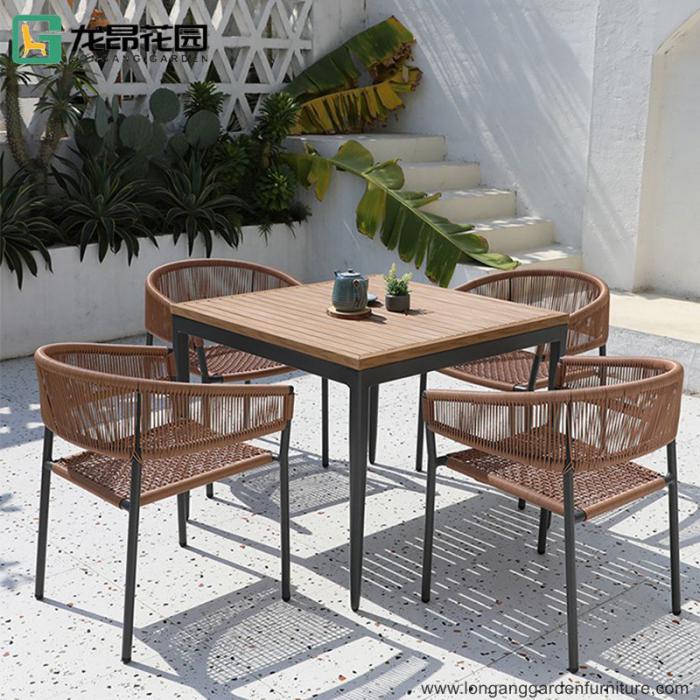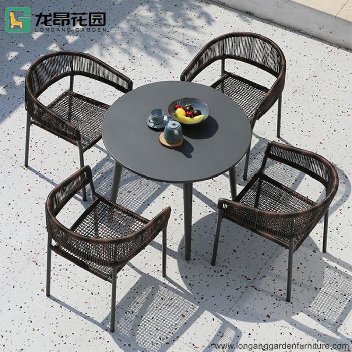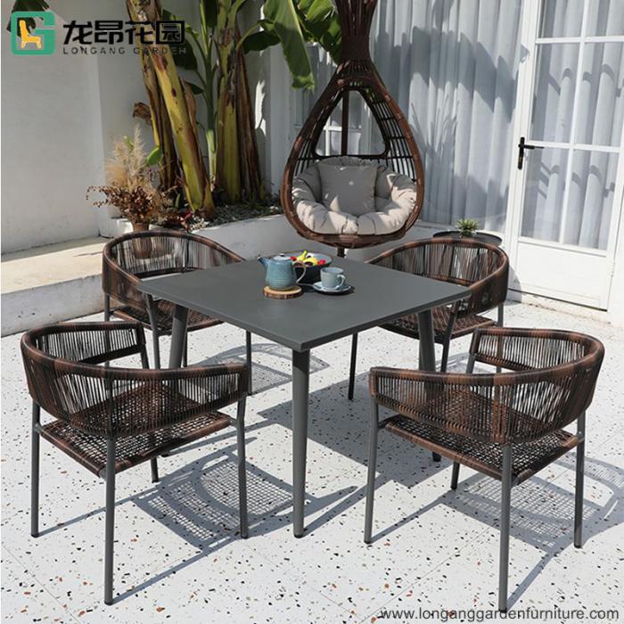 Customizable modern courtyard terrace party table outdoor braided rope furniture dining tables and chairs