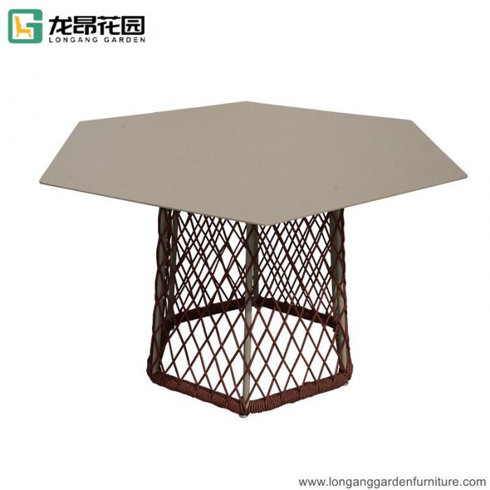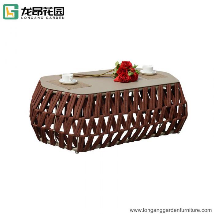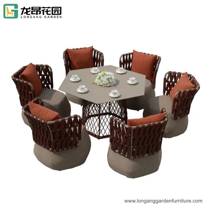 Modern Nordic Beach Holiday Villa Outdoor Woven Rope Dining Table and Chair Furniture Set