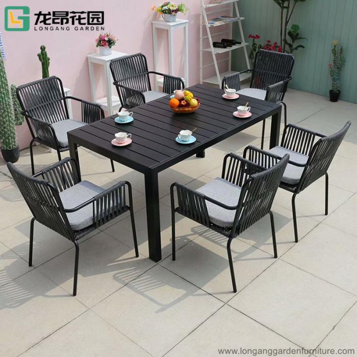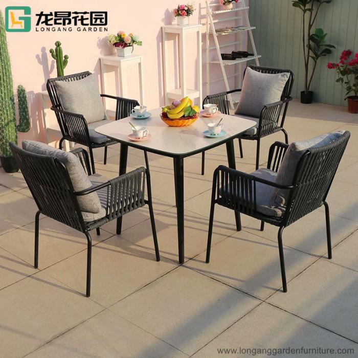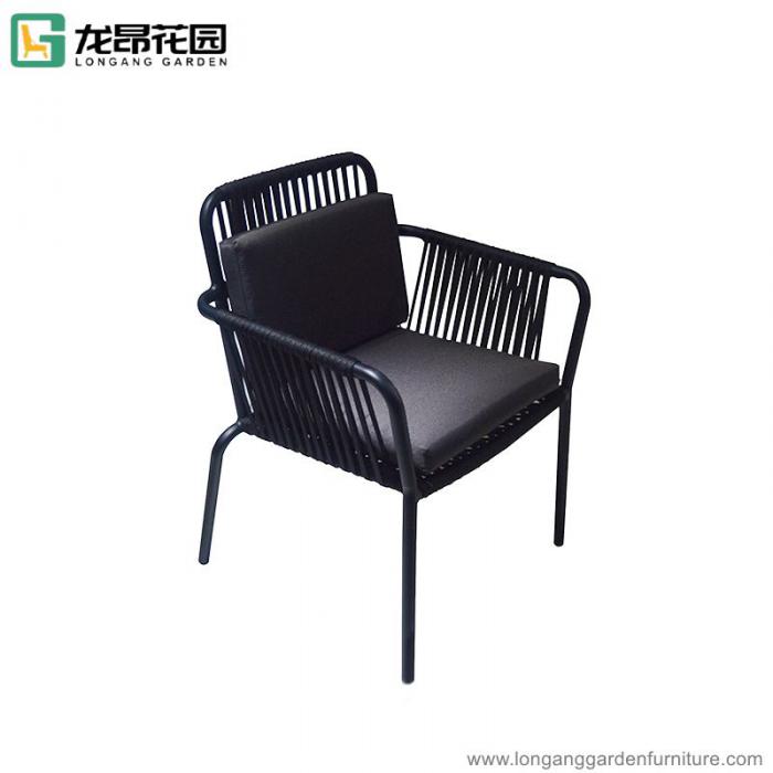 Modern hotel dining restaurant fabric rope waving metal chair outdoor patio furniture