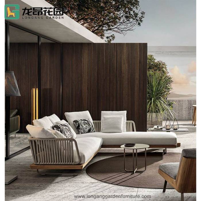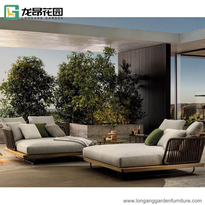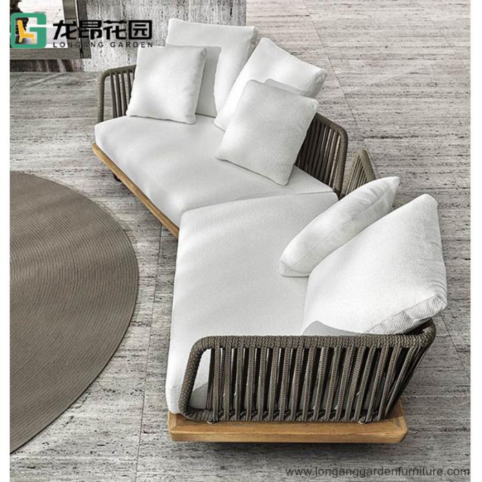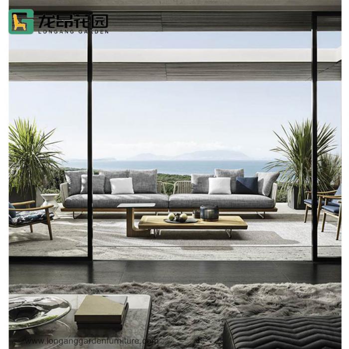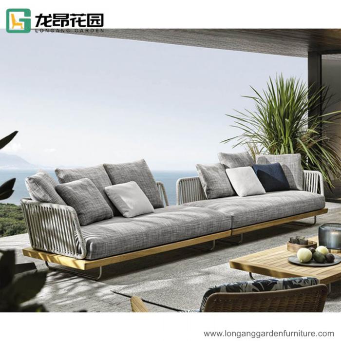 Luxury teak outdoor sofa courtyard leisure balcony rope sofa set furniture