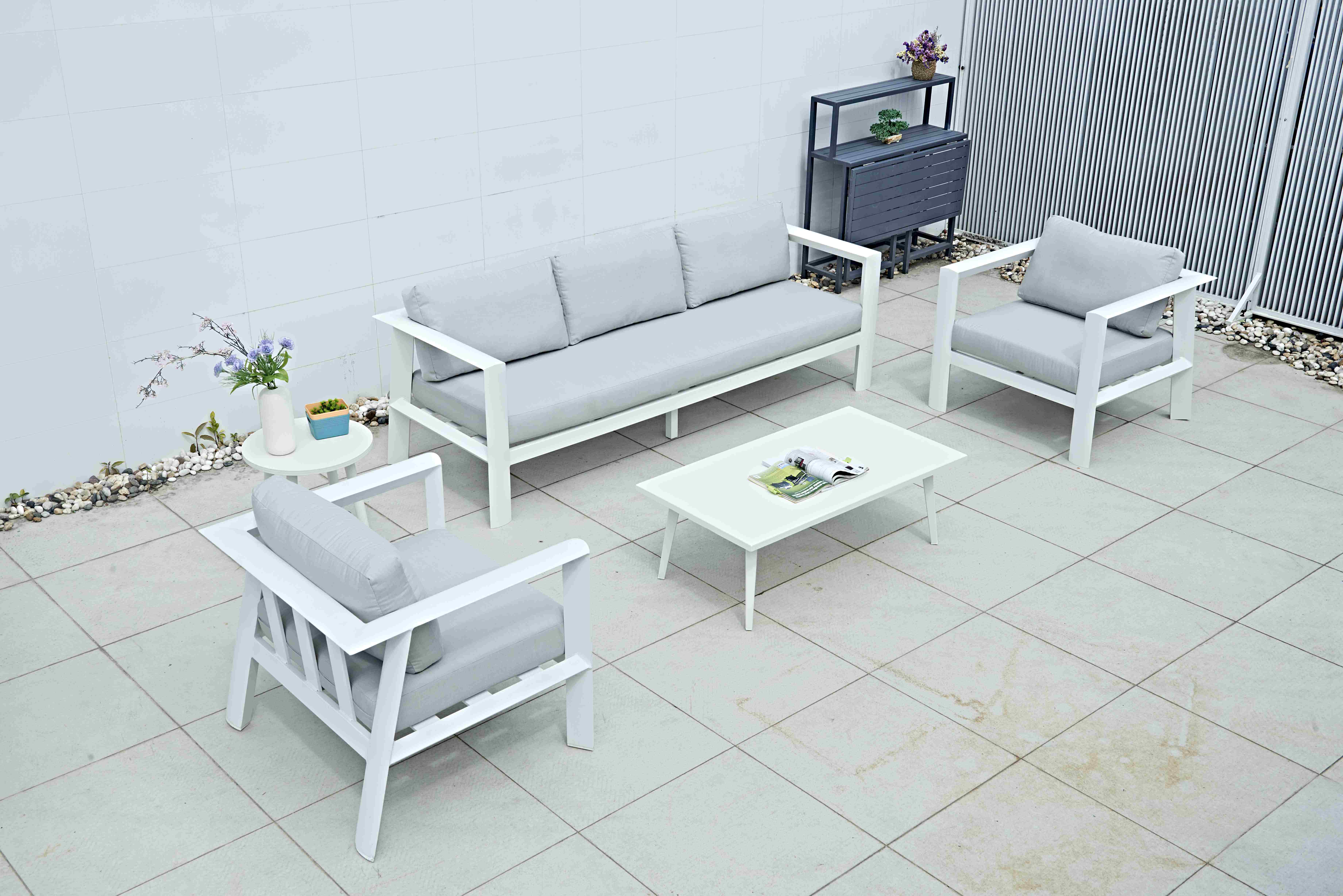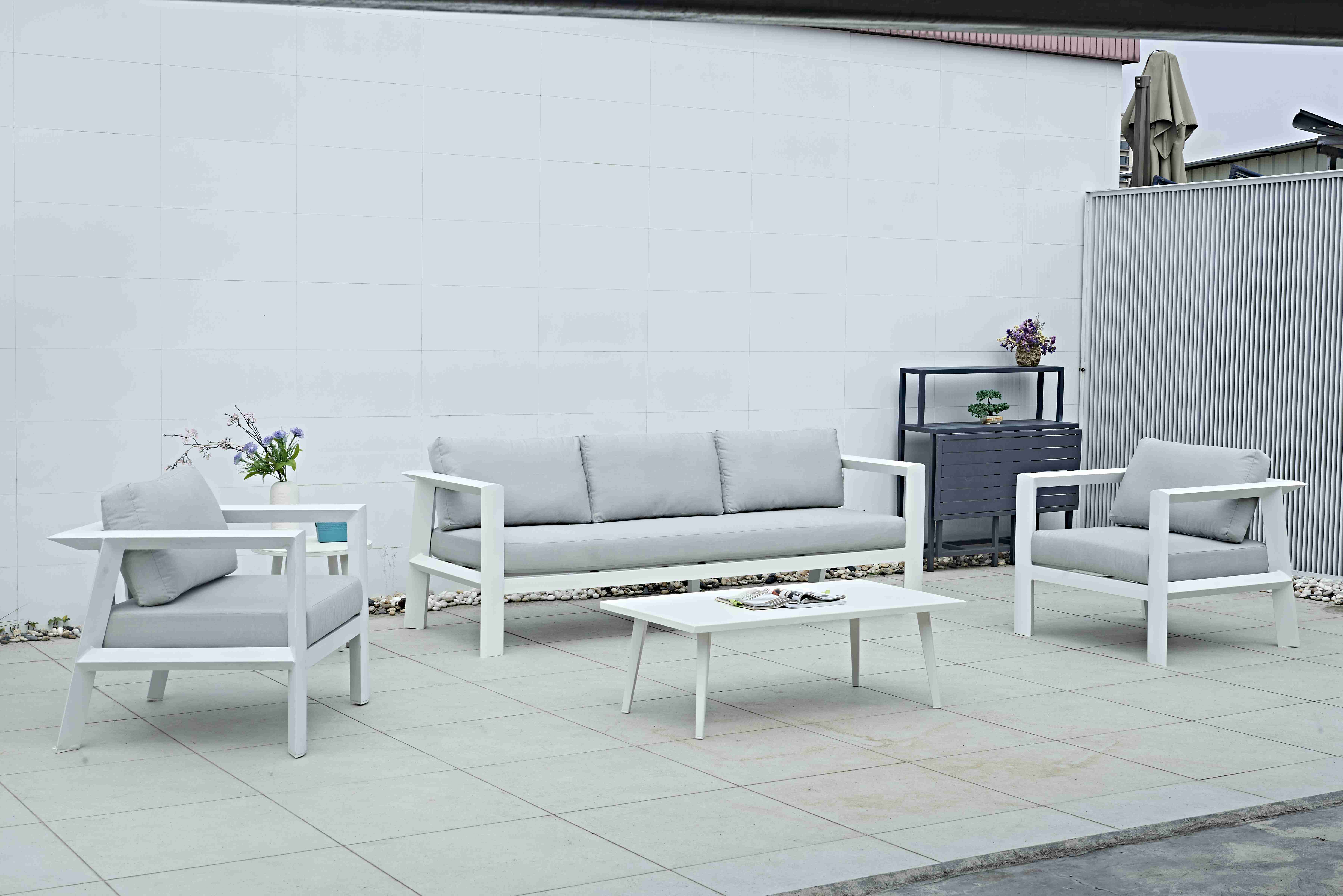 Luxury Modern Living Room All Weather Aluminum Sofa Outdoor Furniture Patio Metal Outdoor Sofa White Aluminum Garden Sofa Set
