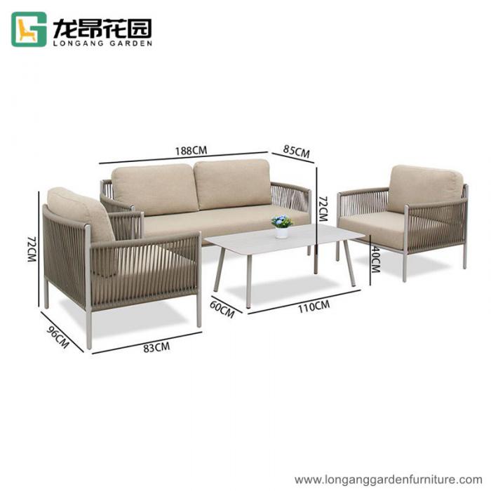 Fashionable and simple outdoor aluminum sofa courtyard comfortable garden rope sofa