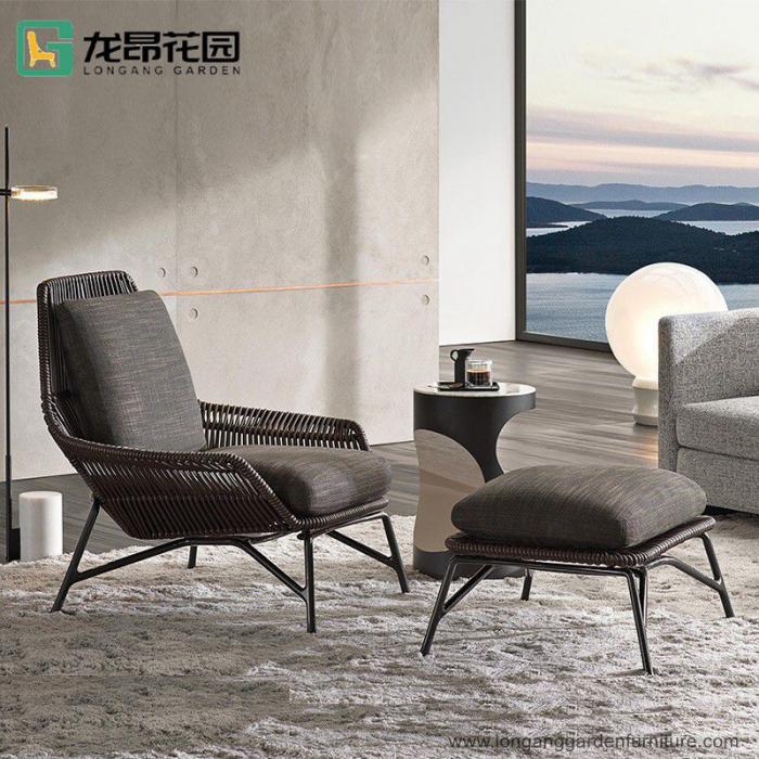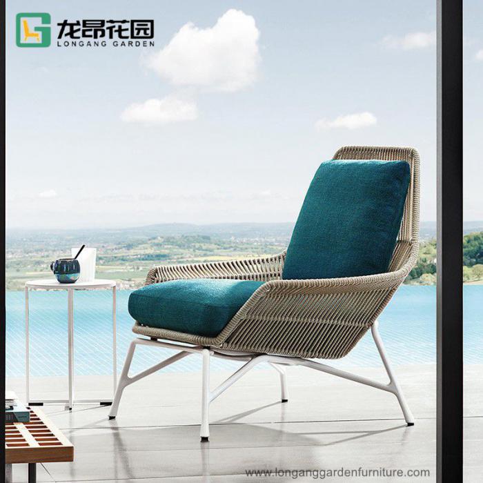 Modern Leisure Rope Cover Metal Single Sofa Hotel Lounge Chair with ottoman