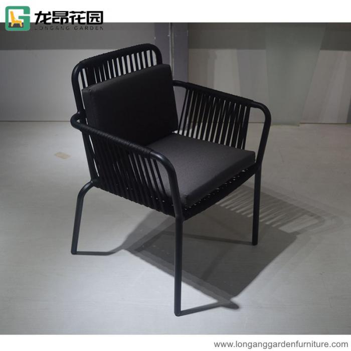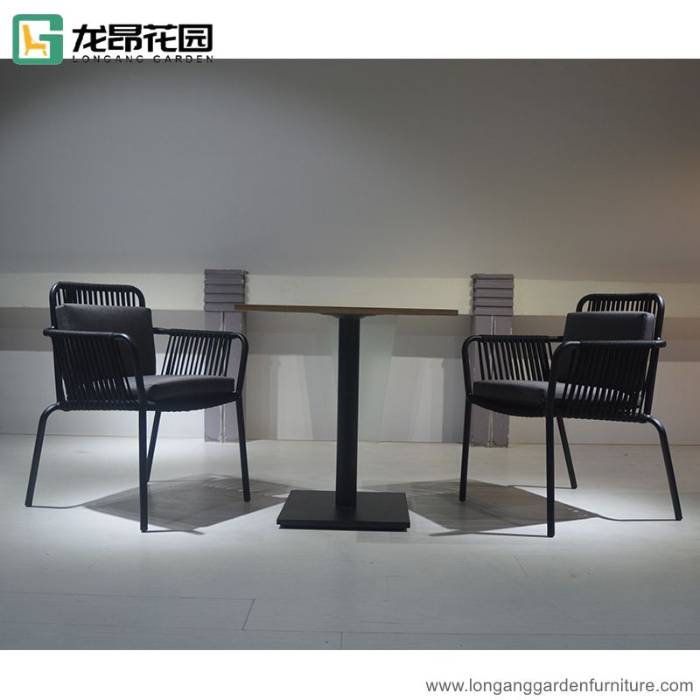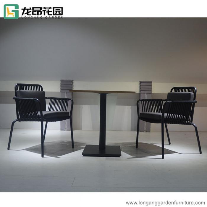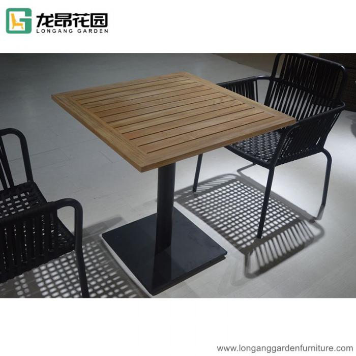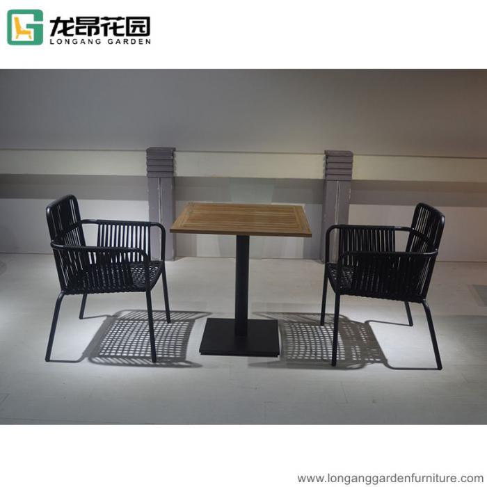 Modern Outdoor Teak Wood Table And Aluminum Rope Chair Set For Restaurant Cafe Coffee Shop