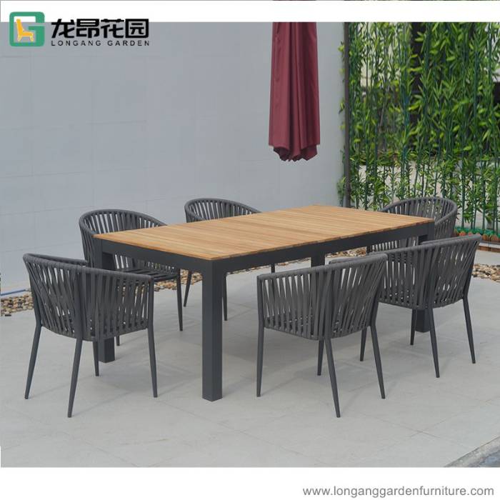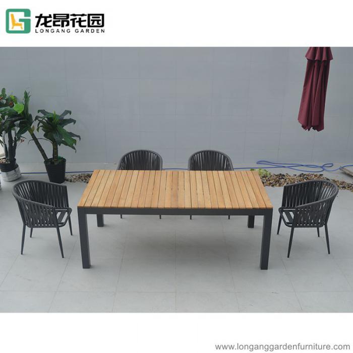 Outside contemporary Teak Wood dining Table and Woven Chairs Balcony Patio furniture set