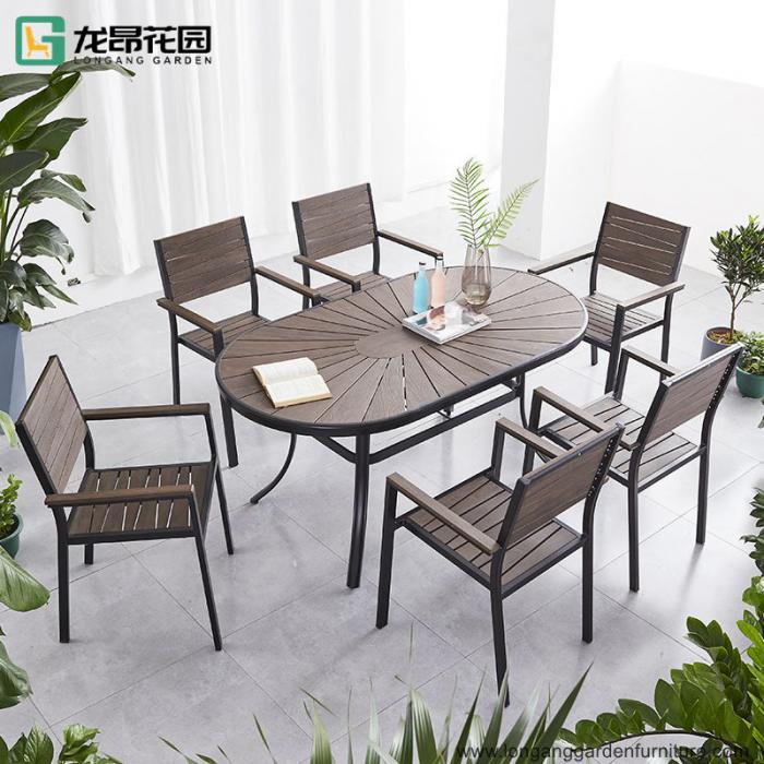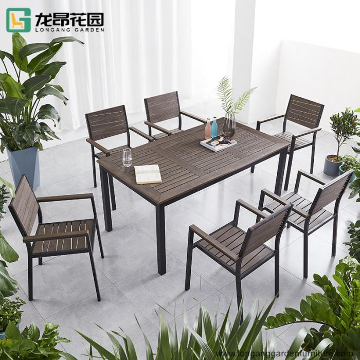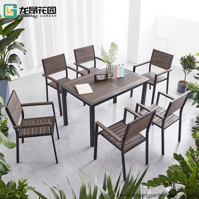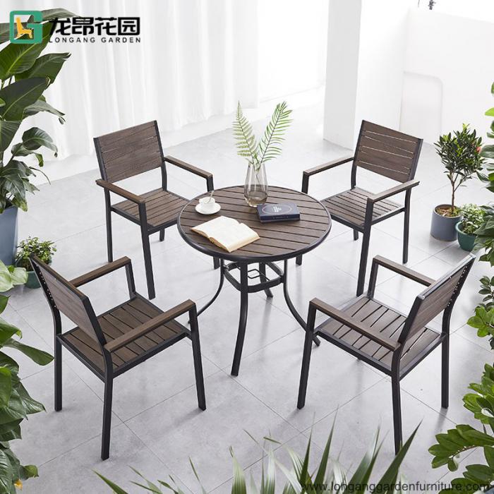 1 Plastic wood dining table + 4 Plastic wood chairs