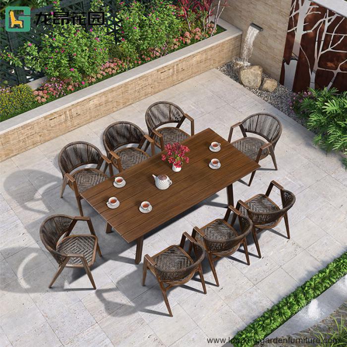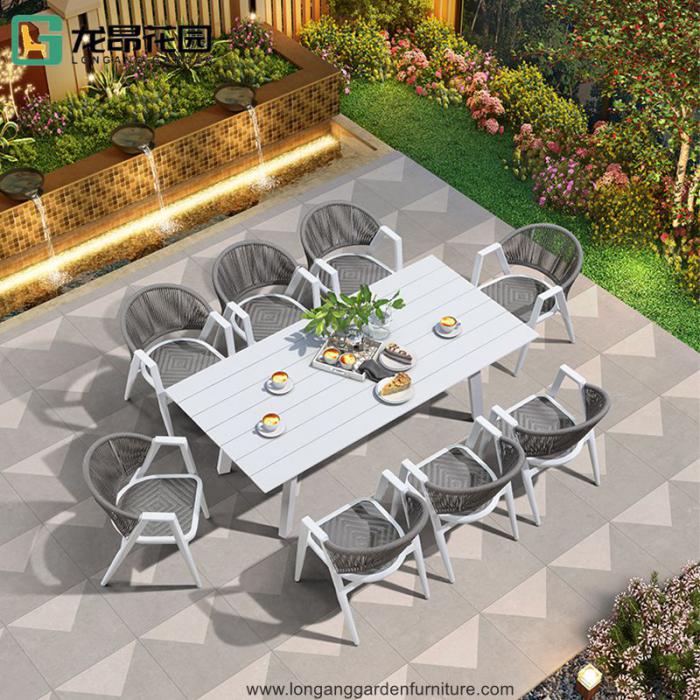 Factory selling modern villa garden outdoor stackable stainless steel dining table and chair set in Foshan