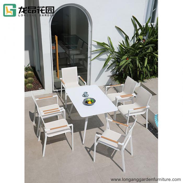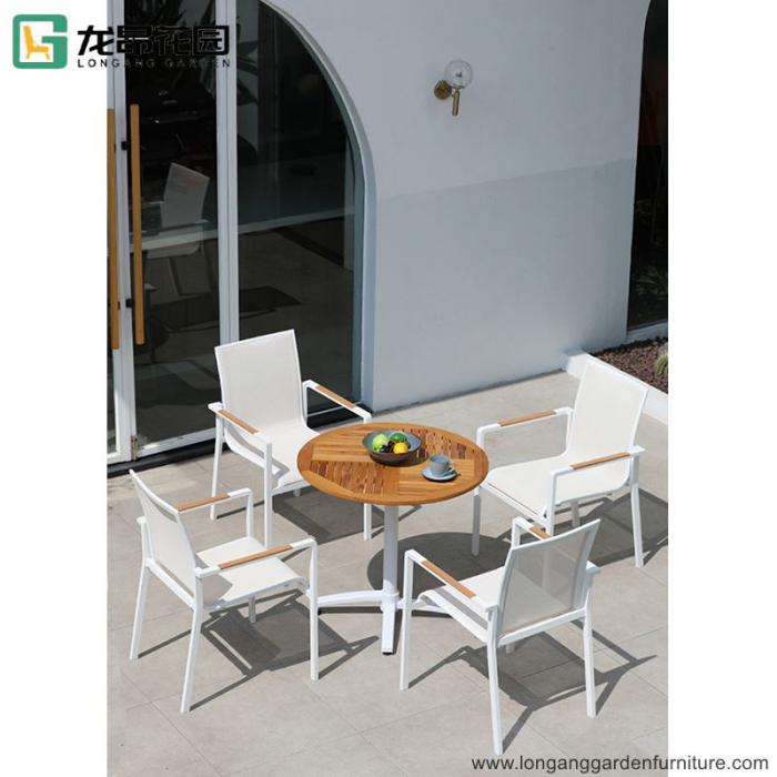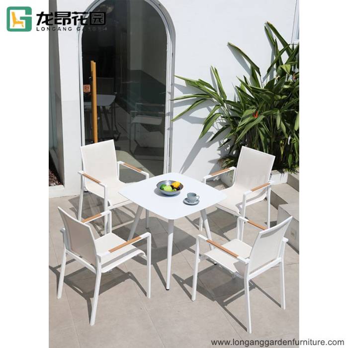 Casual outdoor garden patio restaurant mesh dining chair outdoor dining table set with chairs