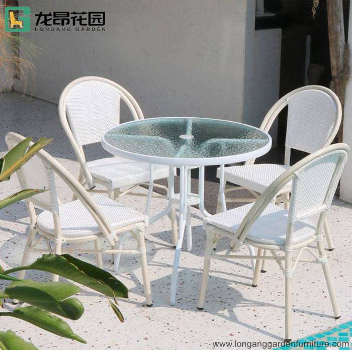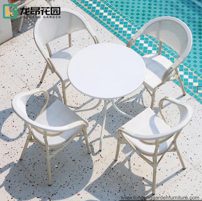Contemporary bistro outdoor terrace restaurant rattan chairs and tables furniture outdoor poolside chairs