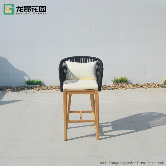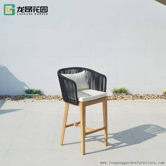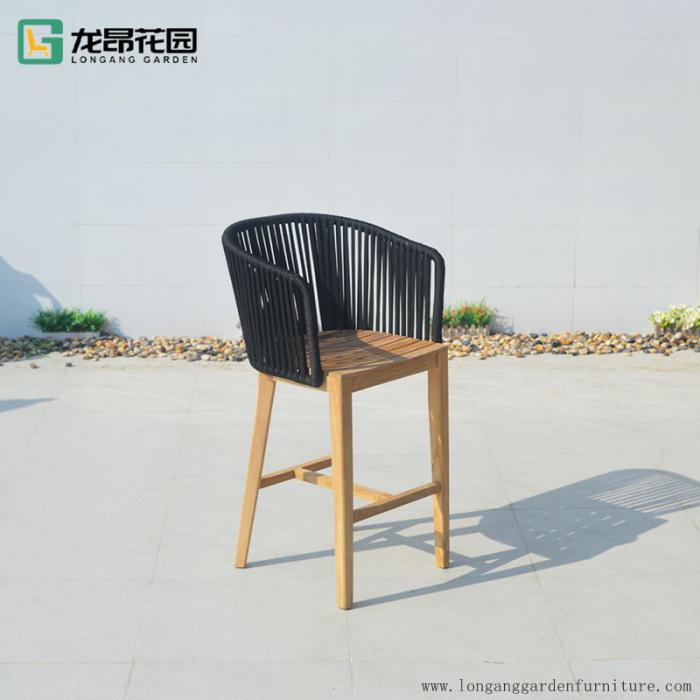 Hot selling outdoor dining chair modern braided rope furniture patio outdoor bistro high bar chair