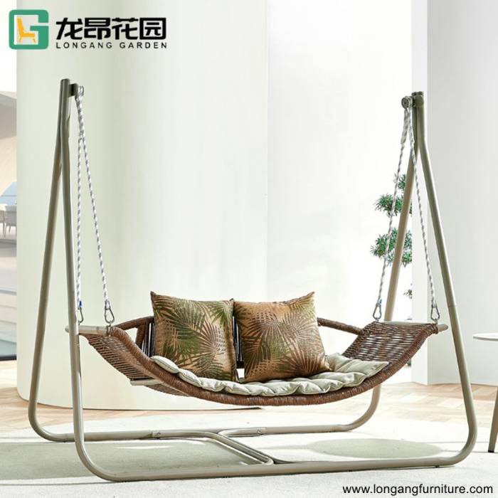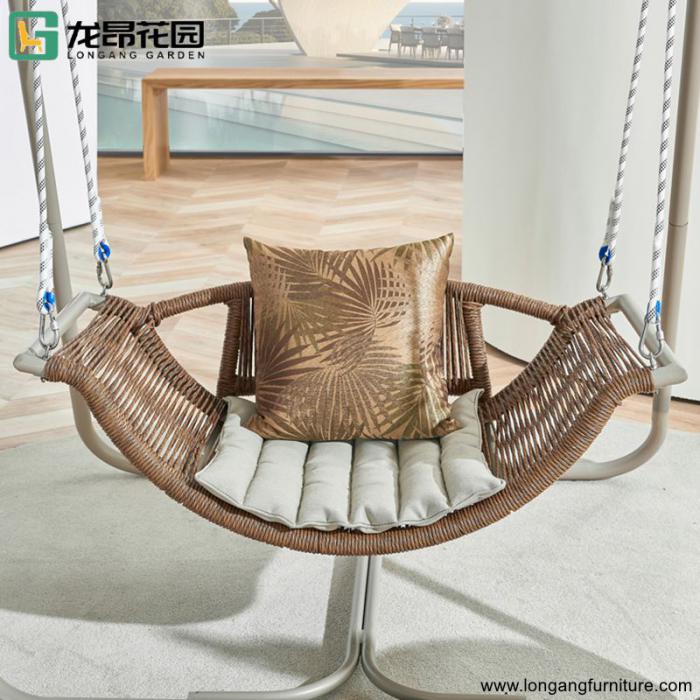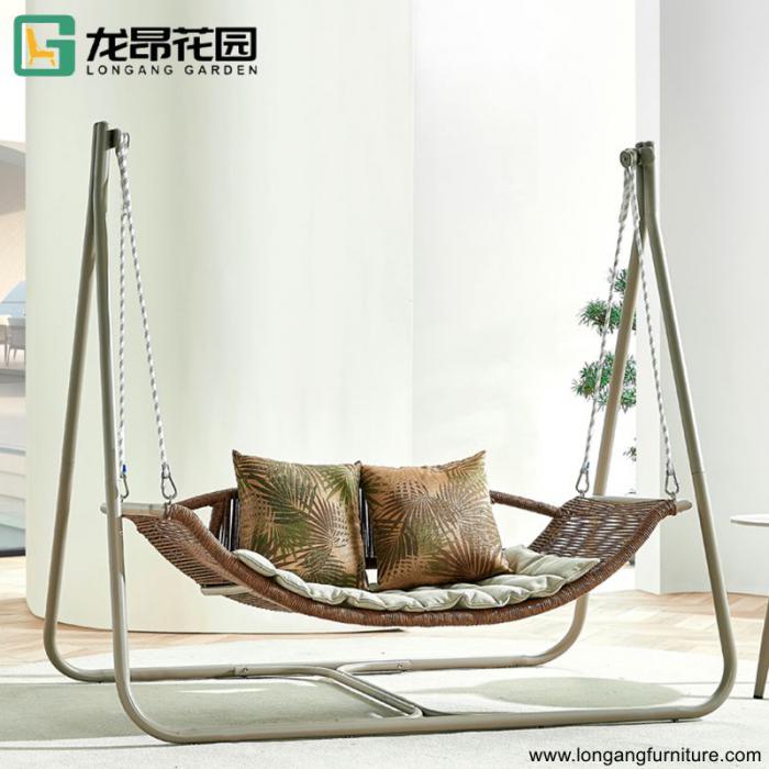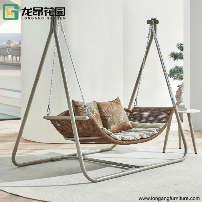 Long ang best-selling outdoor aluminum frame furniture courtyard double hanging chair swing set with cushion